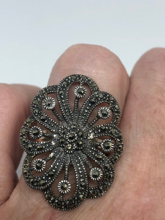 Vintage Genuine Swiss Marcasite Setting 925 Sterling Silver Gothic Ring