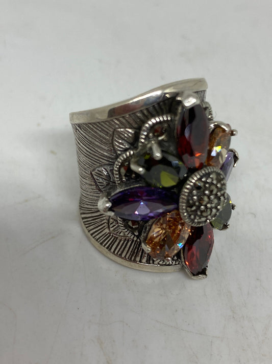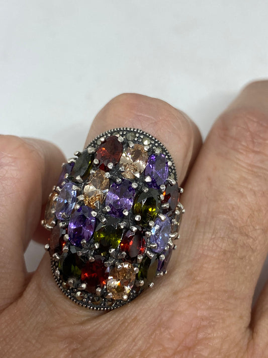 Vintage Genuine Swiss Marcasite Mixed Gemstone Ring 925 Sterling Silver