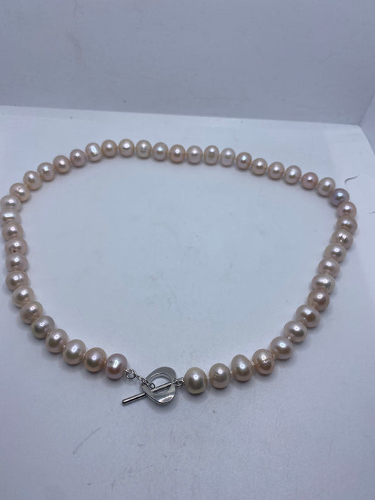 Vintage Hand Knotted Pink Pearl 18 in Heart Toggle Necklace