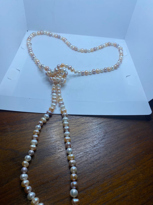 Vintage Hand Knotted Pink Pearl 48 in Necklace