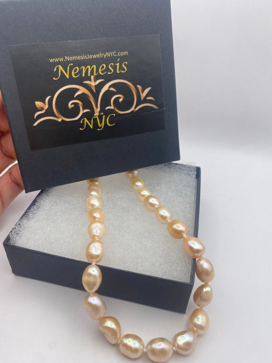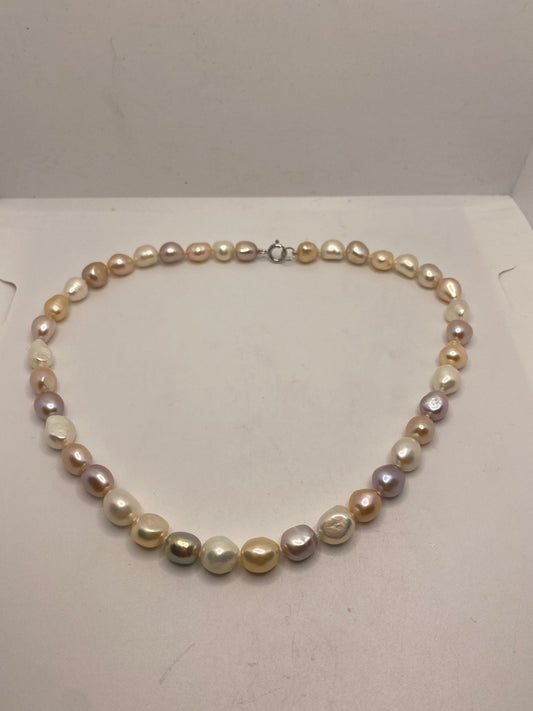 Vintage Hand Knotted Peach Pearl 16 inch Necklace
