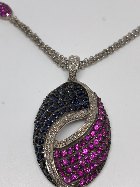 Vintage Handmade 925 Sterling Silver Genuine Mixed color gemstomes Antique Pendant Necklace