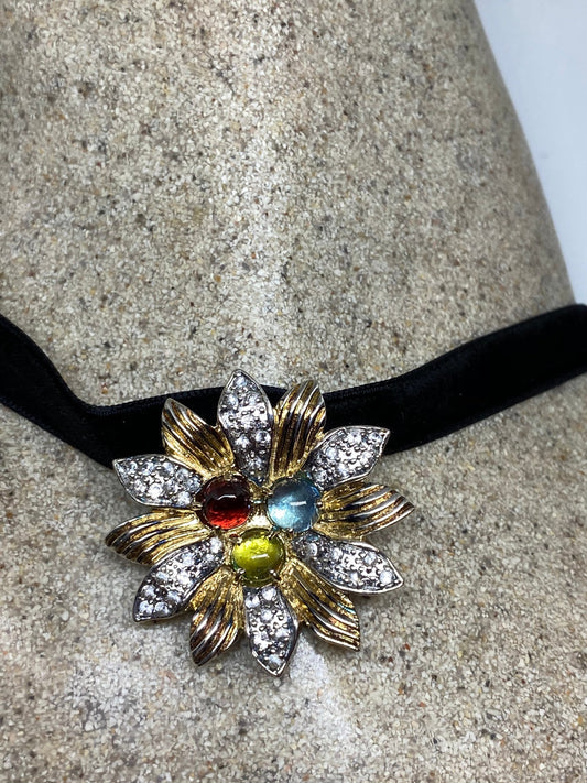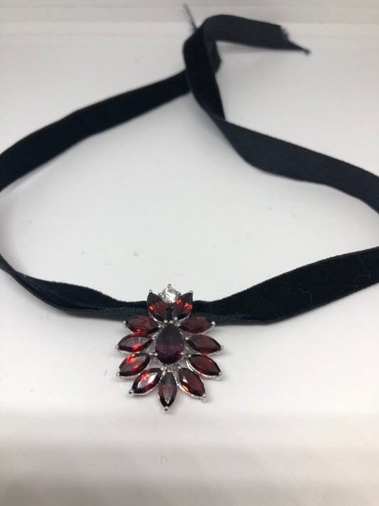 Vintage Handmade 925 Sterling Silver Genuine Garnet Antique Pendant Necklace Velvet Choker