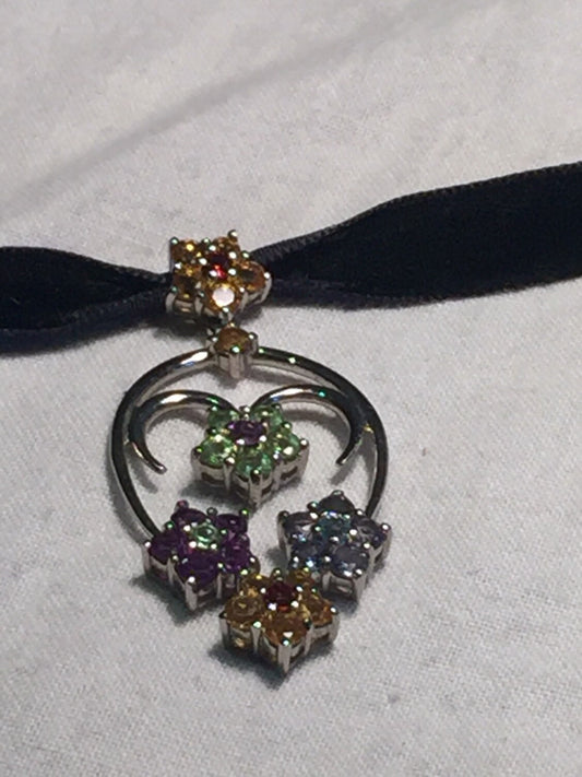 Vintage Handmade 925 Sterling Silver Genuine Mixed Gemstone Antique Heart Pendant Necklace