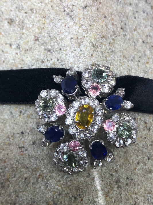 Vintage Handmade 925 Sterling Silver Genuine Mixed Colored Gemstone Antique Pendant Necklace