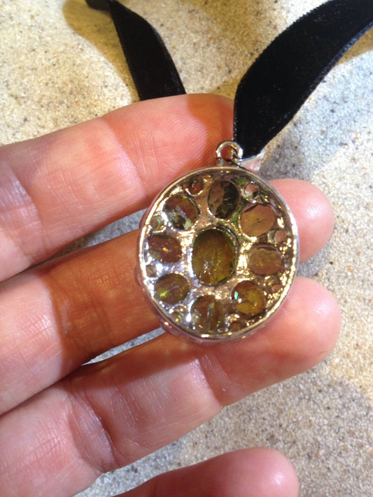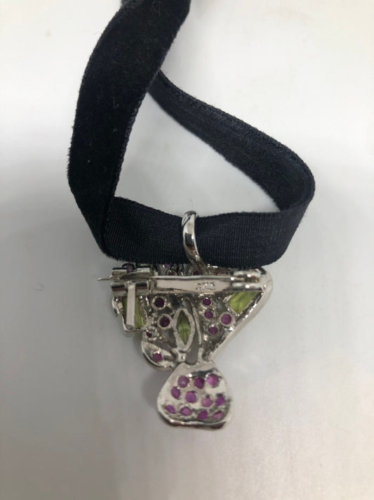 Vintage Handmade 925 Sterling Silver Genuine Peridot Pendant brooch