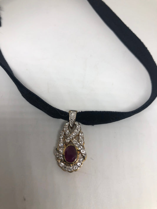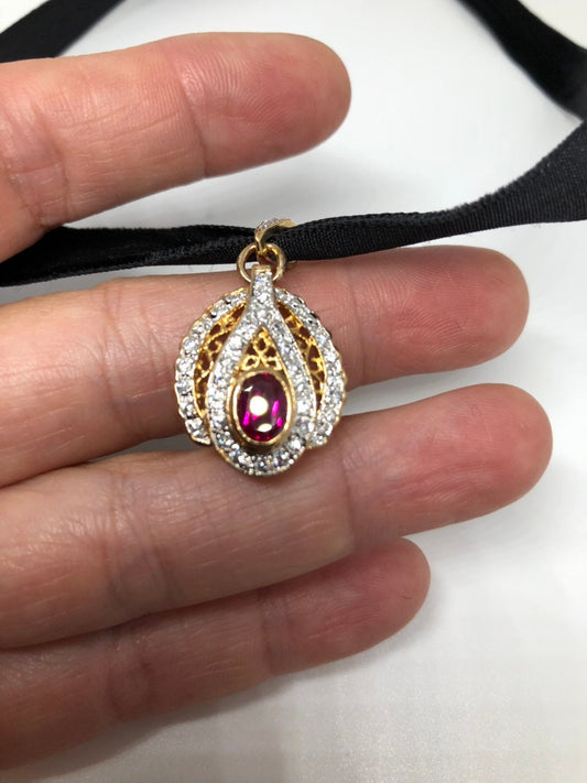 Vintage Handmade 925 Sterling Silver Gold Ruby Pendant