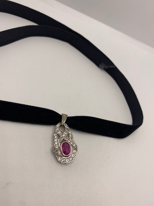 Vintage Handmade 925 Sterling Silver Genuine Pink tourmaline Antique Heart Pendant Necklace