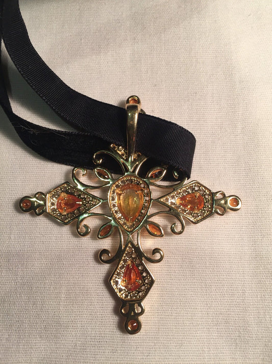 Vintage Handmade 925 Sterling Silver Gold Finish Citrine Cross Pendant