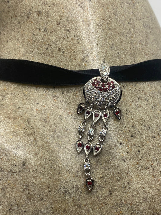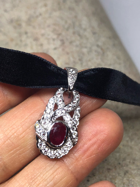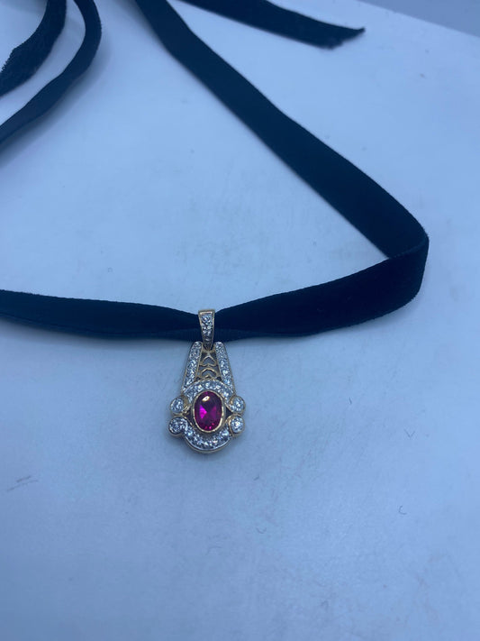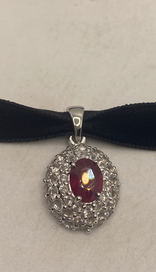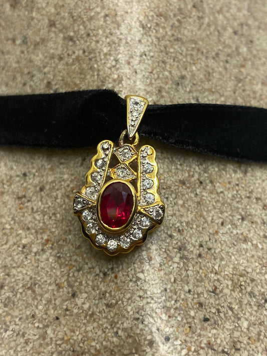 Vintage Handmade 925 Sterling Silver Gold Ruby Pendant