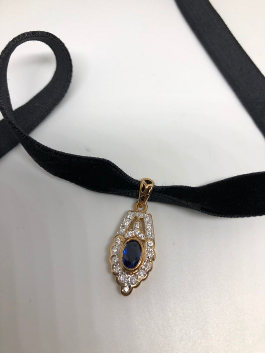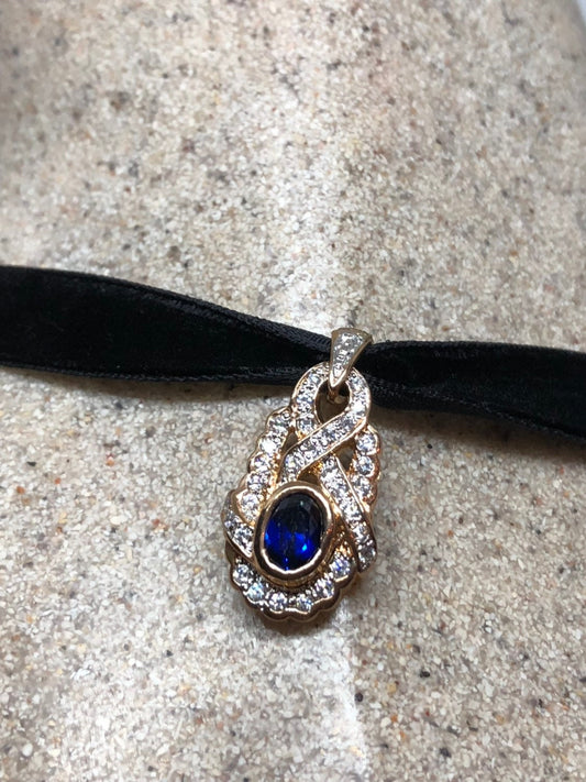 Vintage Handmade 925 Sterling Silver Gold Sapphire Pendant