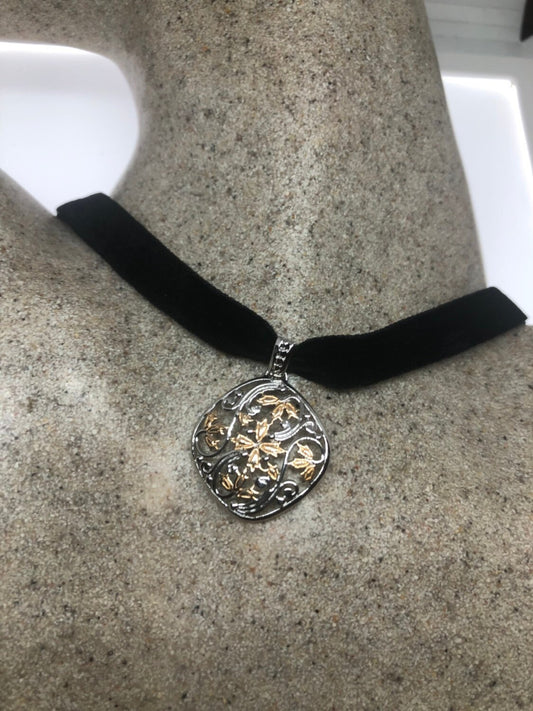 Vintage Handmade 925 Sterling Silver Gold Rhodium Pendant Choker