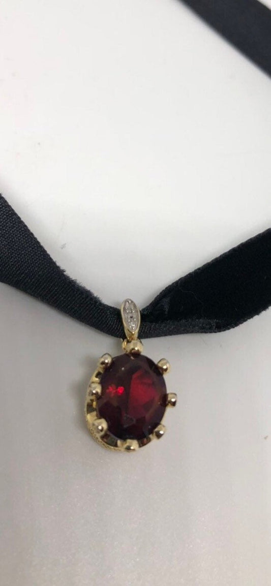 Vintage Handmade 925 Sterling Silver Gold Finish Genuine Garnet Antique Pendant Necklace