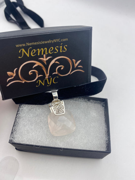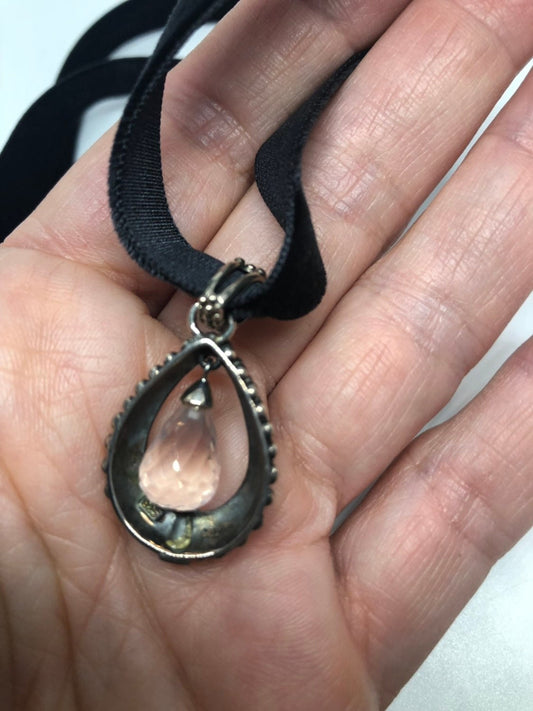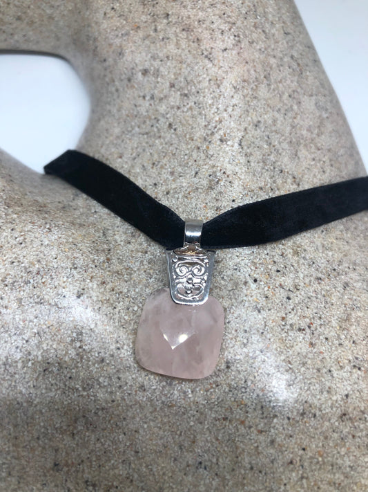 Vintage Handmade 925 Sterling Silver Rose Quartz Pendant