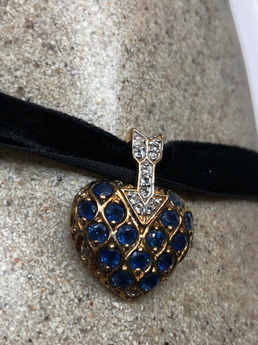 Vintage Handmade 925 Sterling Silver Rose Gold Blue and White Sapphire Pendant