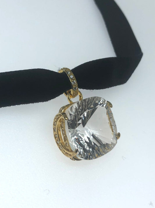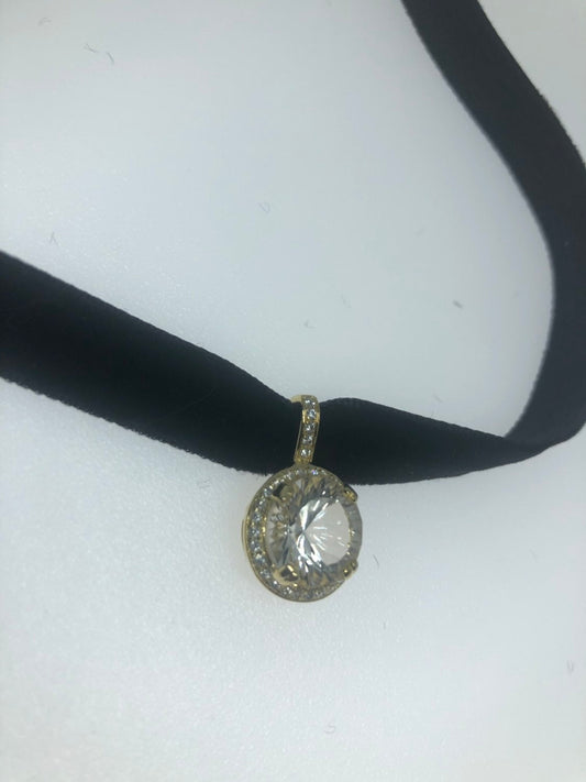 Vintage Handmade 925 Sterling Silver Rhodium White Topaz White Sapphire Pendant Choker