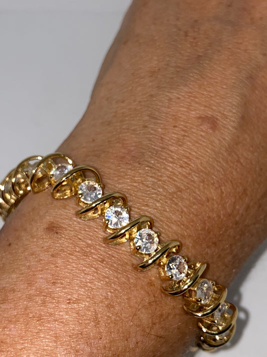 Vintage White Sapphires Gold 925 Sterling Silver Tennis Bracelet