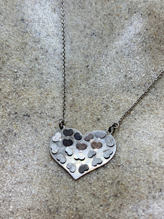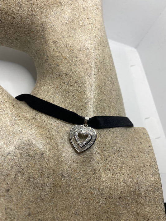 Vintage 925 Sterling Silver White Sapphire Heart Pendant Choker