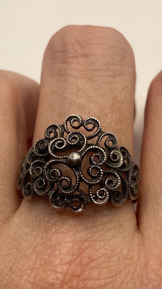 Vintage 925 Sterling Silver Wrapped Wire Filigree Ring