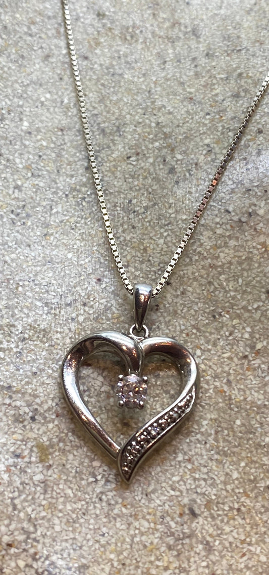 Vintage 925 Sterling Silver White Sapphire Heart Pendant 18 inch necklace