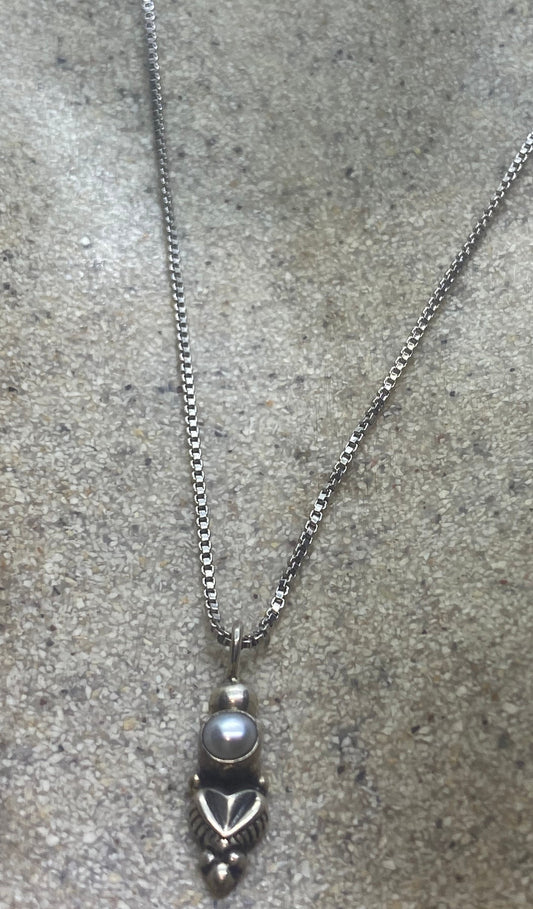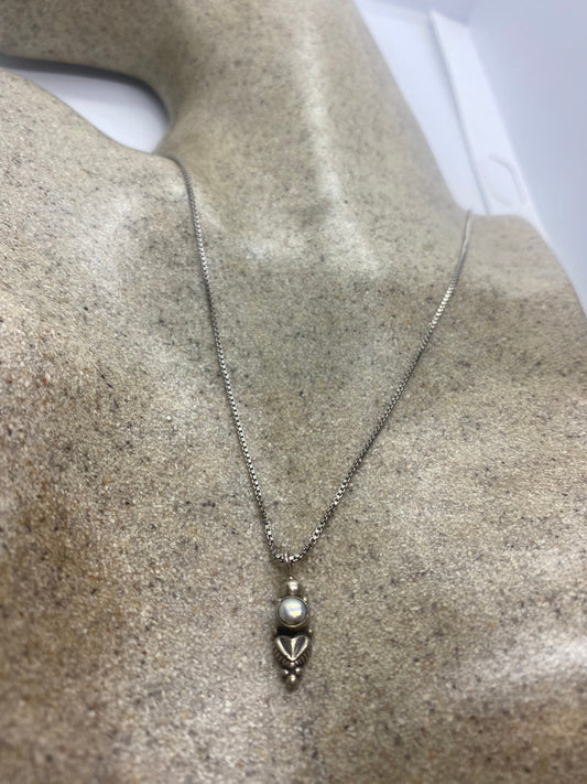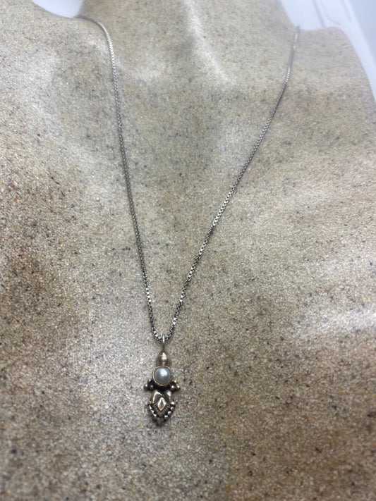 Vintage 925 Sterling Silver White Pearl Pendant 16 inch necklace