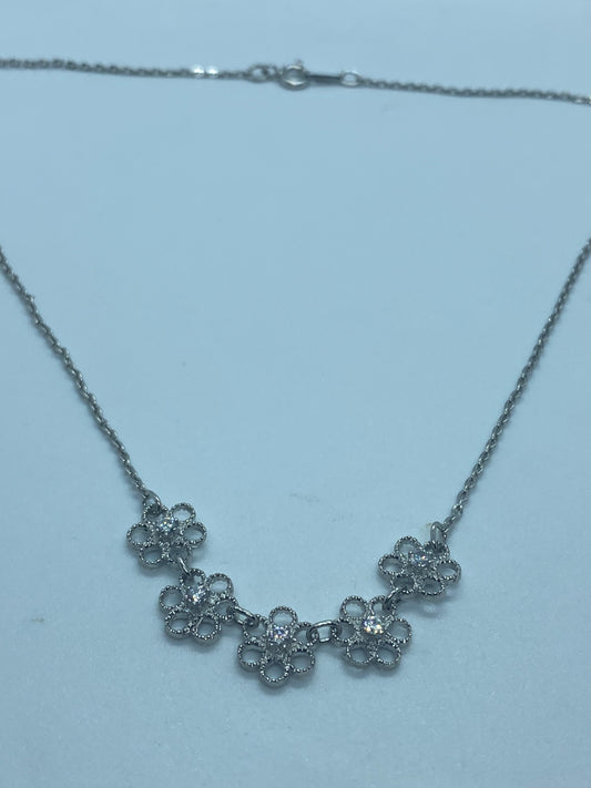 Vintage 925 Sterling Silver White Sapphire Flower 16 inch necklace