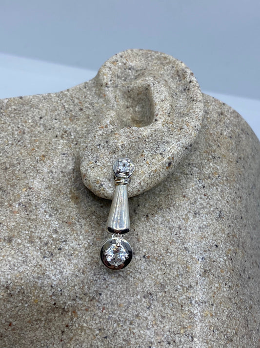 Vintage 925 Sterling Silver White Sapphire Gemstone Drop Chandelier Earrings
