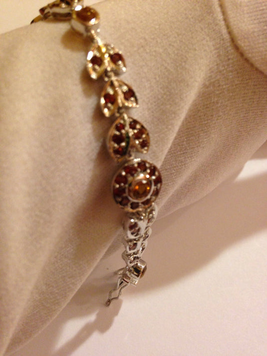 Vintage Handmade Genuine Citrine and Garnet 925 Sterling Silver Bracelet