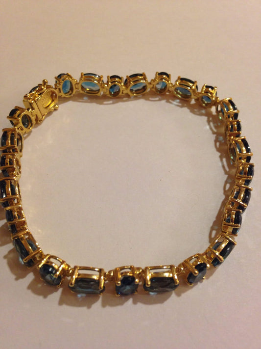 Vintage Blue Topaz Golden 925 Sterling Silver Tennis Bracelet