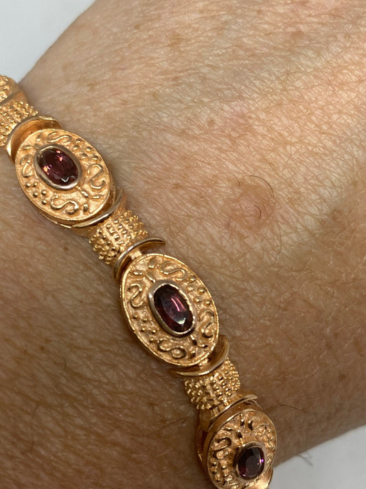 Vintage Handmade Pink Tourmaline Rose Gold 925 Sterling Silver Tennis Bracelet