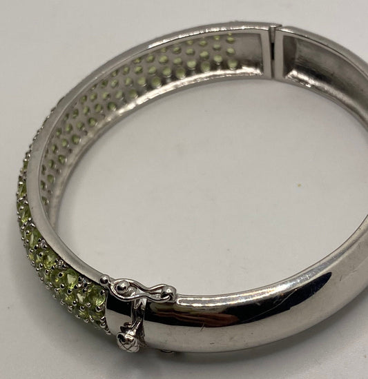 Vintage Green Peridot 925 Sterling Silver Bangle Bracelet