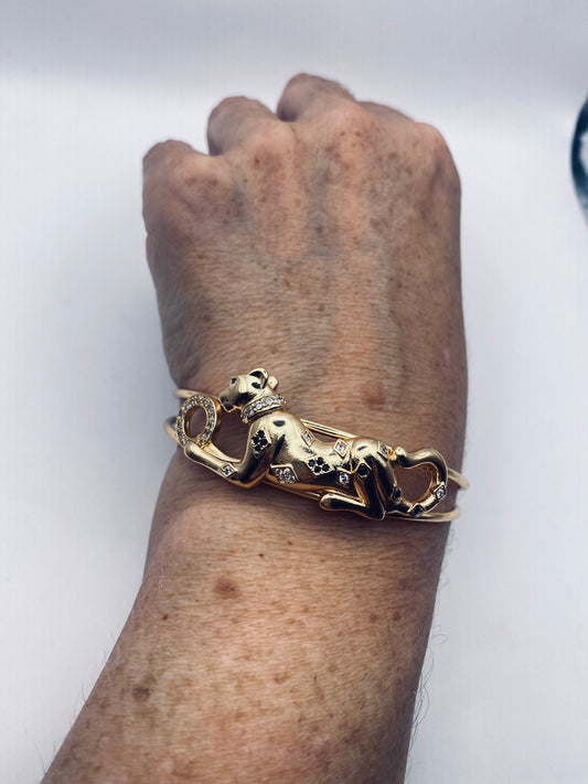 Vintage Cougar Cat Bangle Bracelet Gold filled Green Crystal Eyes