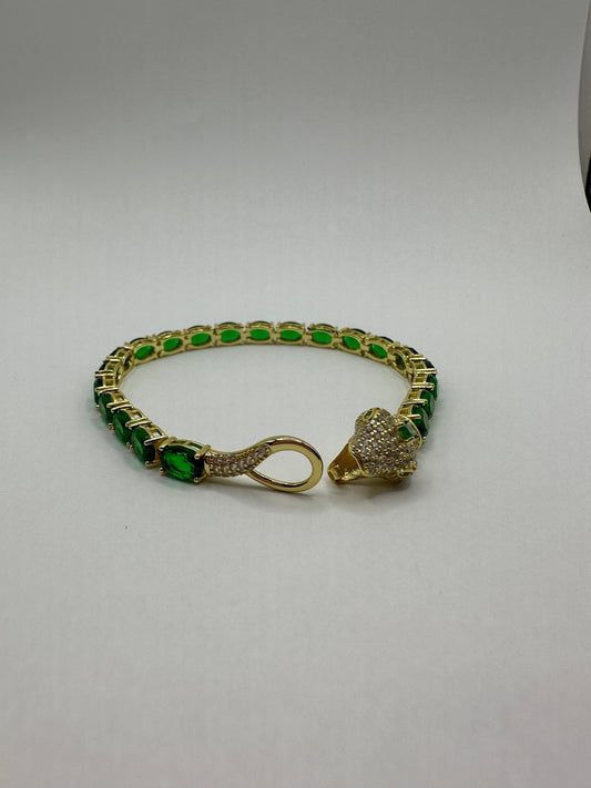 Vintage Green Cubic Zirconia 925 Sterling Silver Snake Tennis Bracelet