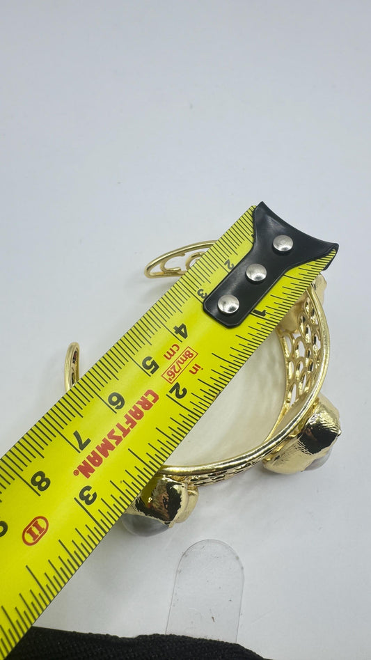 Vintage Pearl Cuff Bangle Bracelet Gold 925 Sterling Silver