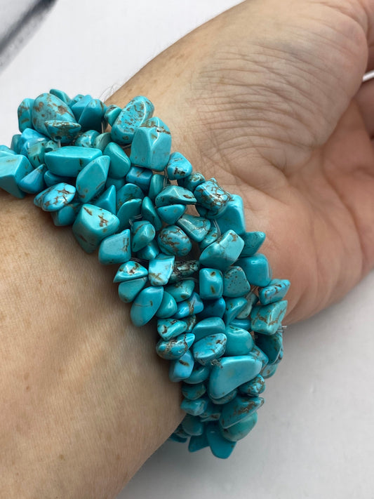 Vintage Turquoise Chip Macrame Stretch Lucky Bracelet