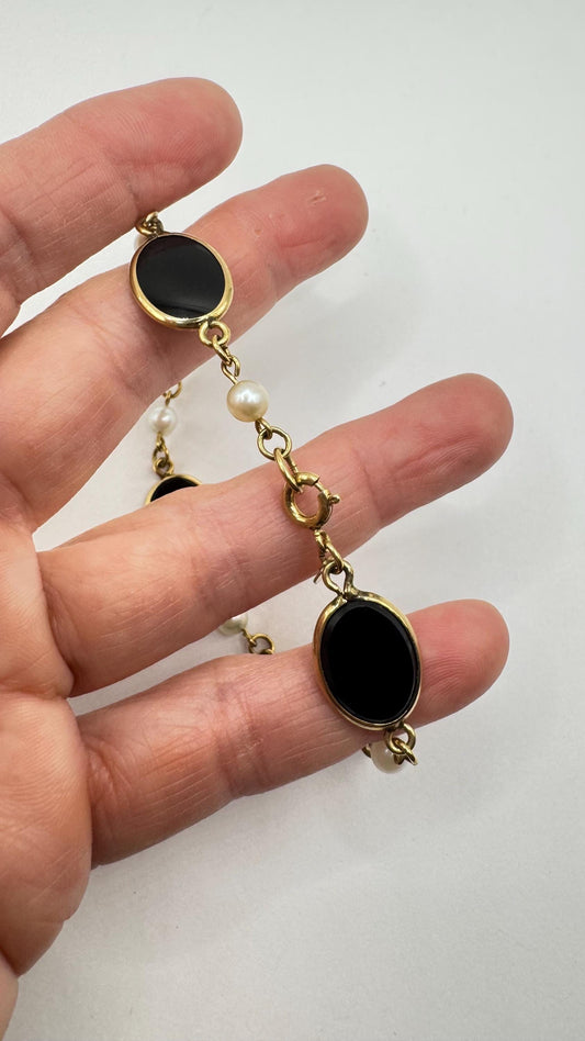 Vintage black Onyx White Pearl Bracelet Gold filled