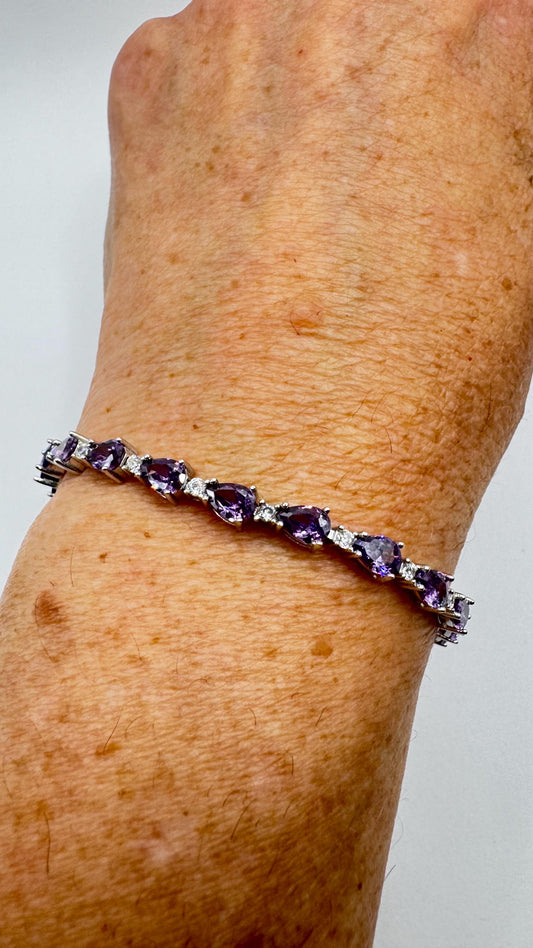 Vintage Purple Amethyst Tennis Bracelet 925 Sterling Silver