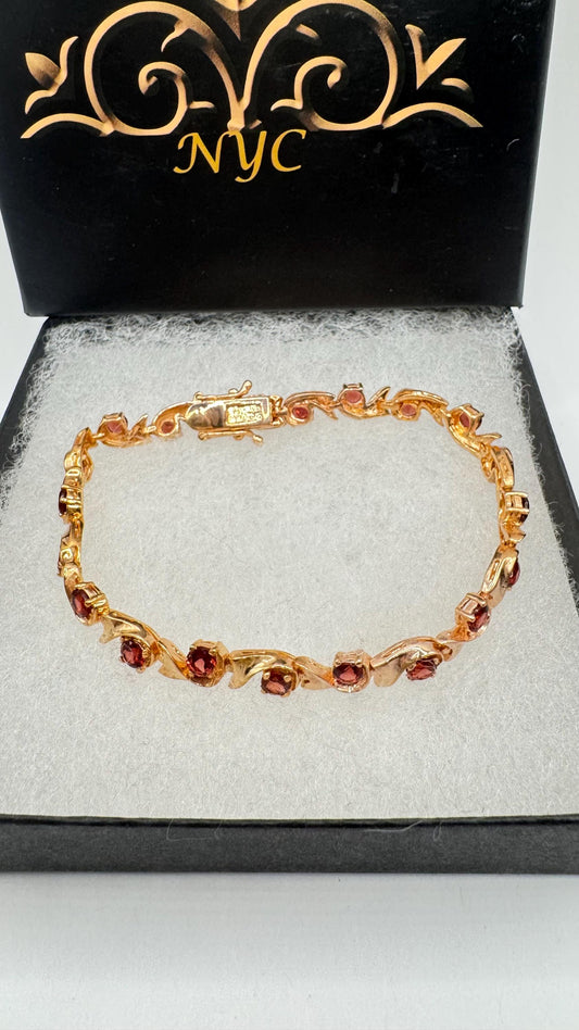 Vintage Bohemian Red Garnet Bracelet Rose Gold 925 Sterling Silver