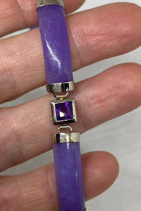 Vintage Purple Jade Tennis Bracelet in 925 Sterling Silver