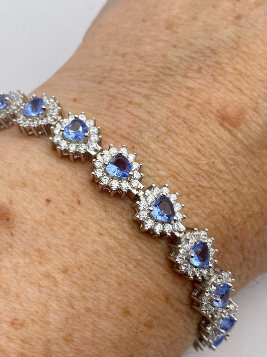 Vintage Blue Iolite Heart 925 Sterling Silver Tennis Bracelet