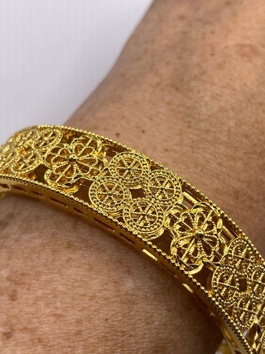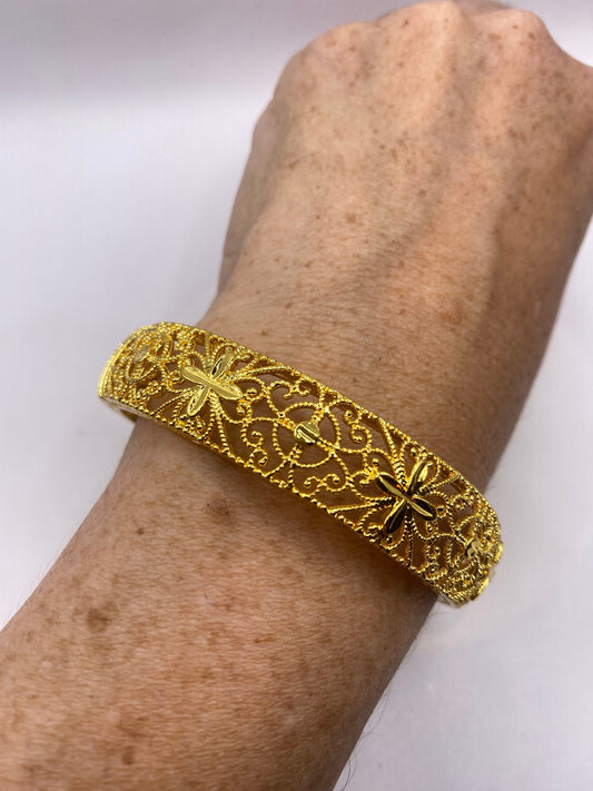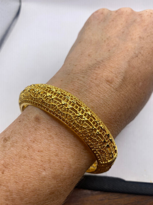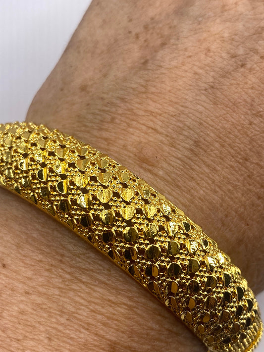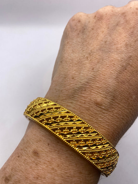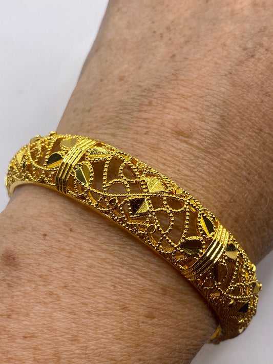 Vintage Mixed Gemstone Golden 925 Sterling Silver Deco Bangle Bracelet