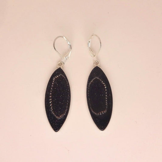 Antique Vintage Black Goldstone Silver Dangle Earrings