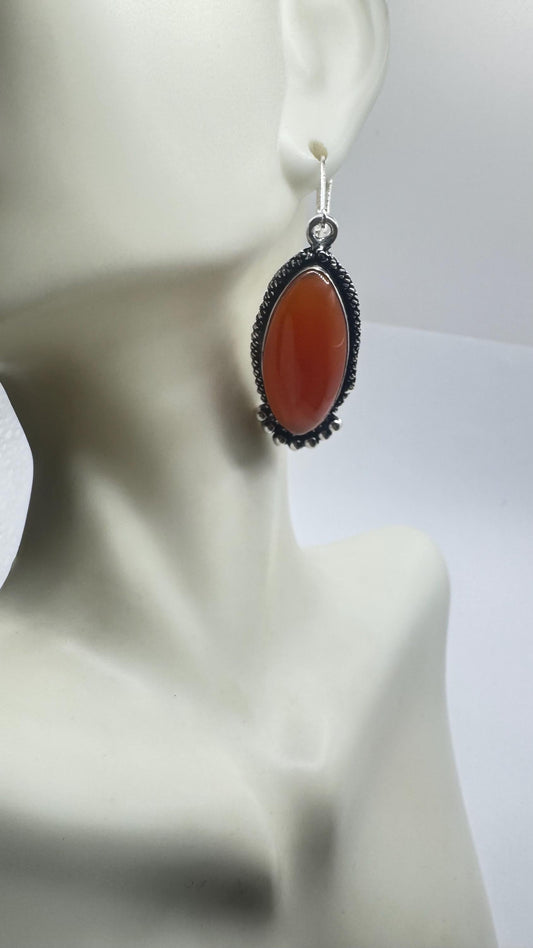 Vintage Genuine are Carnelian 925 Sterling lever backs Silver Filligree Dangle Chandelier Earrings