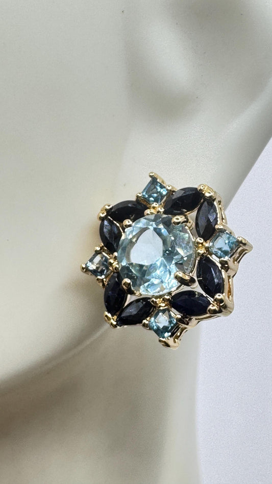 Vintage blue topaz amethyst citrine 925 Sterling Silver Post Earrings