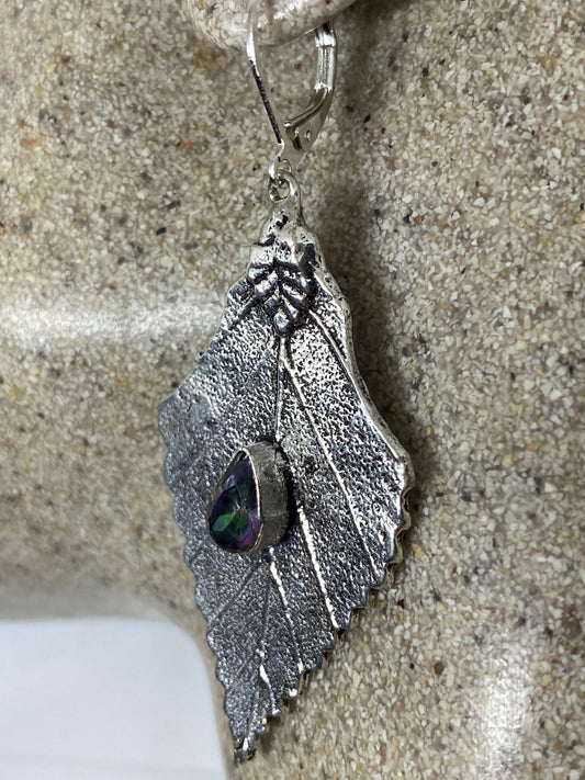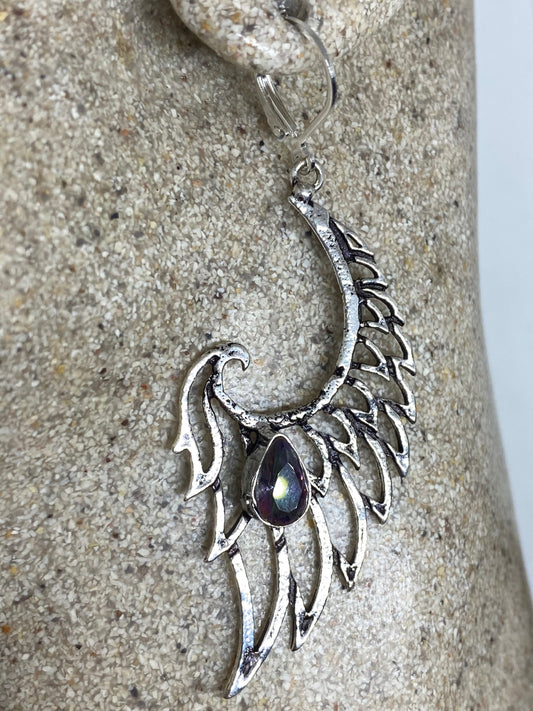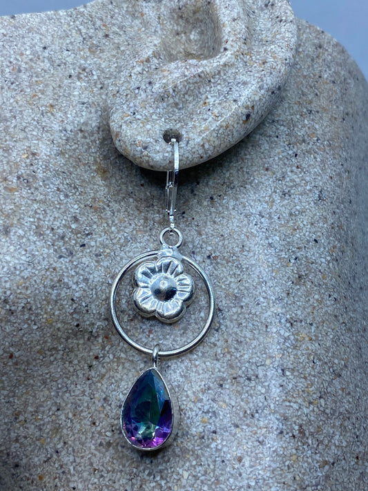 Vintage Purple Amethyst Mystic Topaz Earrings 925 Sterling Silver Leverback