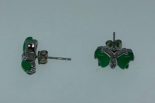Vintage Green Jade Gemstone Sterling Silver HEart Earrings