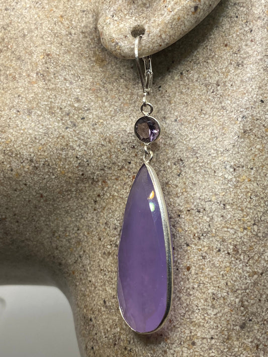 Vintage Purple Chalcedony Silver Dangle Earrings