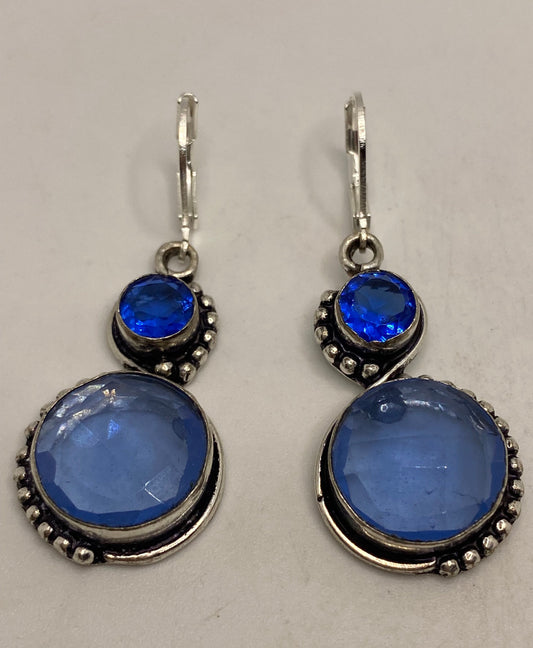 Vintage Handmade 925 Sterling Silver Deep Blue Mystic Topaz Lever Backs Earrings