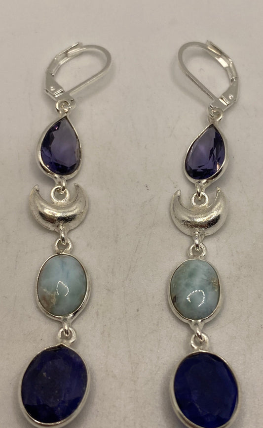Vintage Sterling Silver Blue Sapphire Iolite Turquoise Larimar Earrings