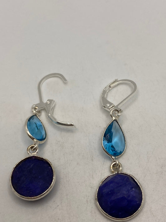 Vintage Blue Raw Sapphire Sterling Silver Lever Back Chandelier Earrings